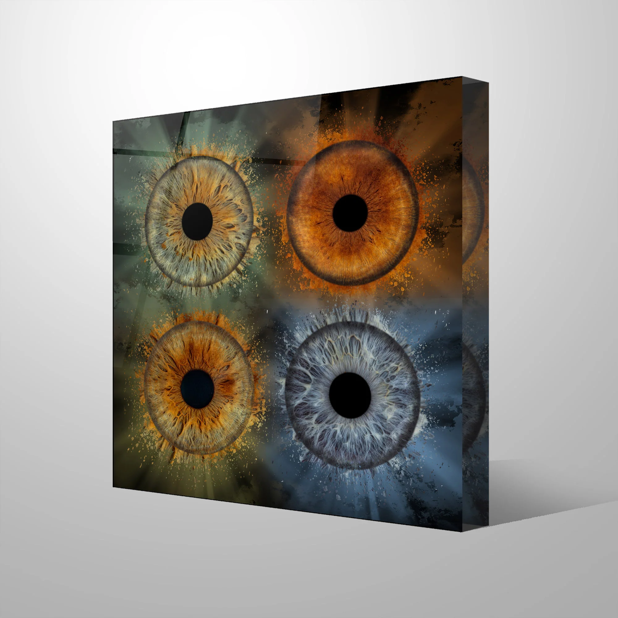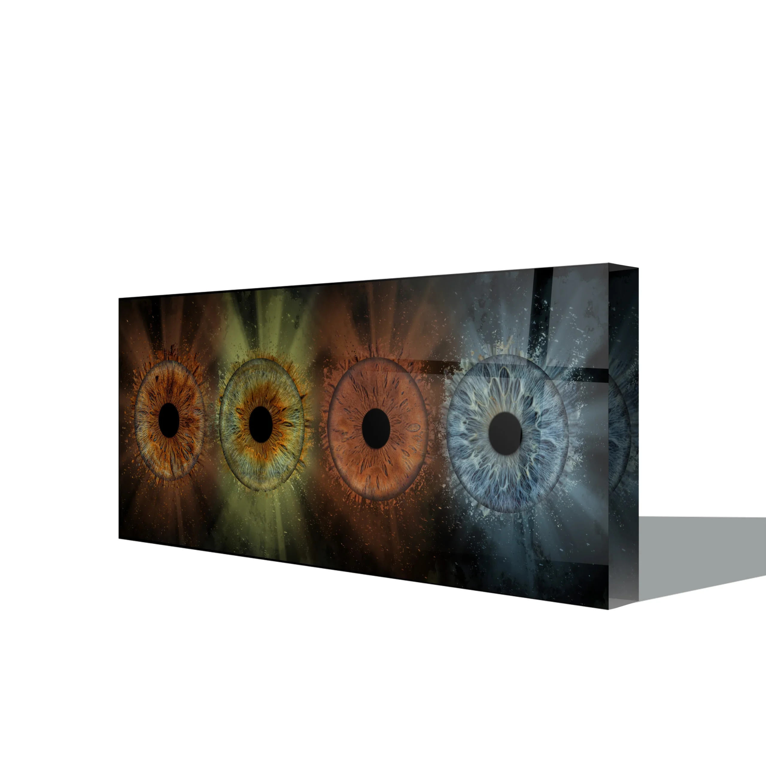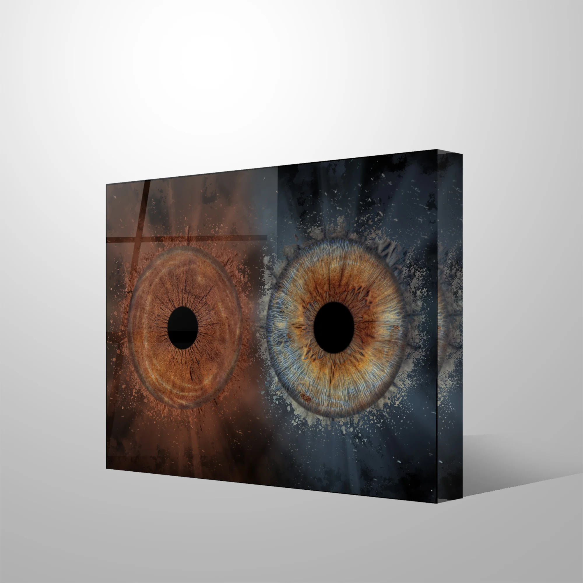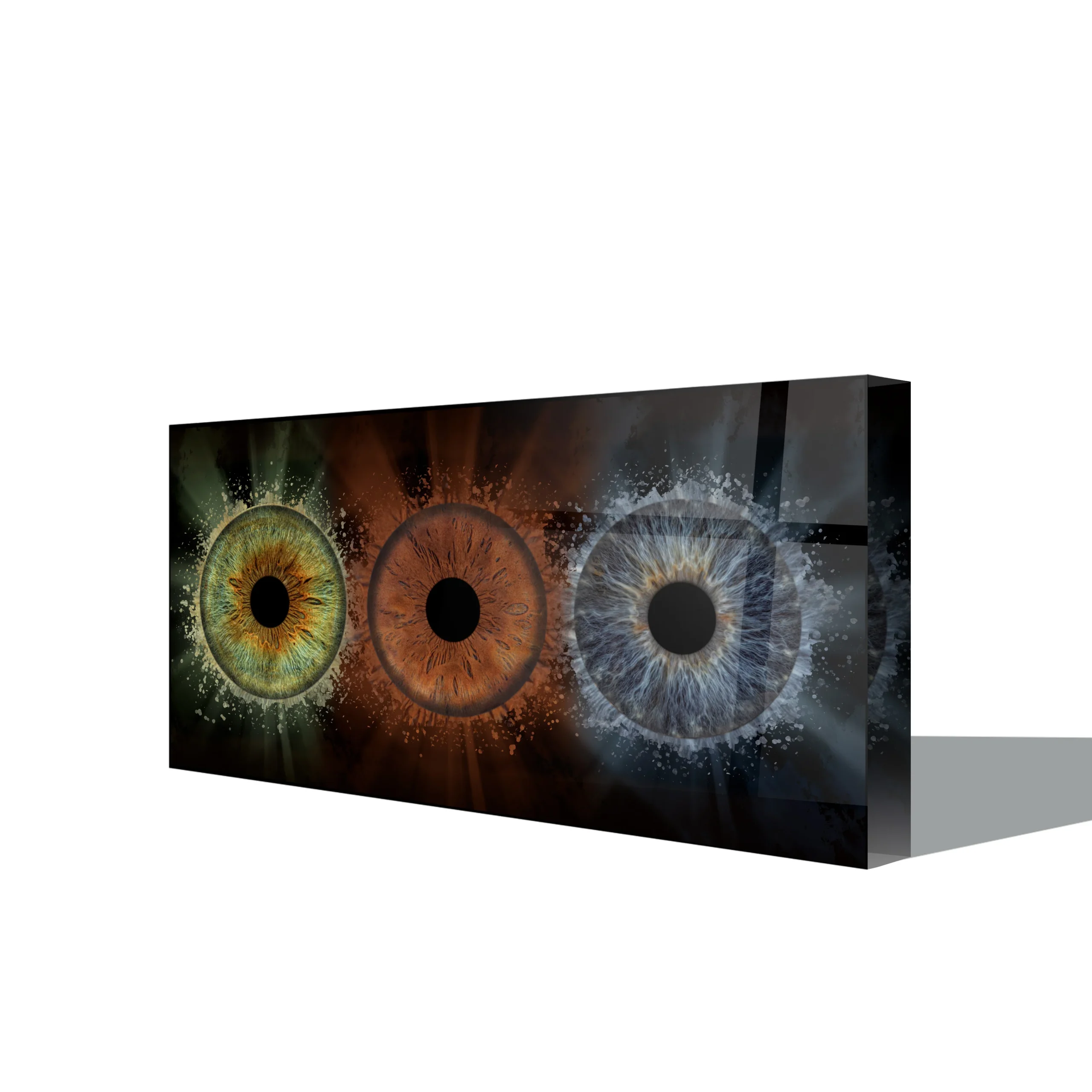 Iris op acrylblok is een echt indrukwekkend decoratiestuk. Het is een 25 mm dikke en krasbestendige decoratie die de digitale reproductie van je iris een nieuwe dimensie geeft. Iris acrylblok is beschikbaar in vier groottes, zowel staand als liggend.